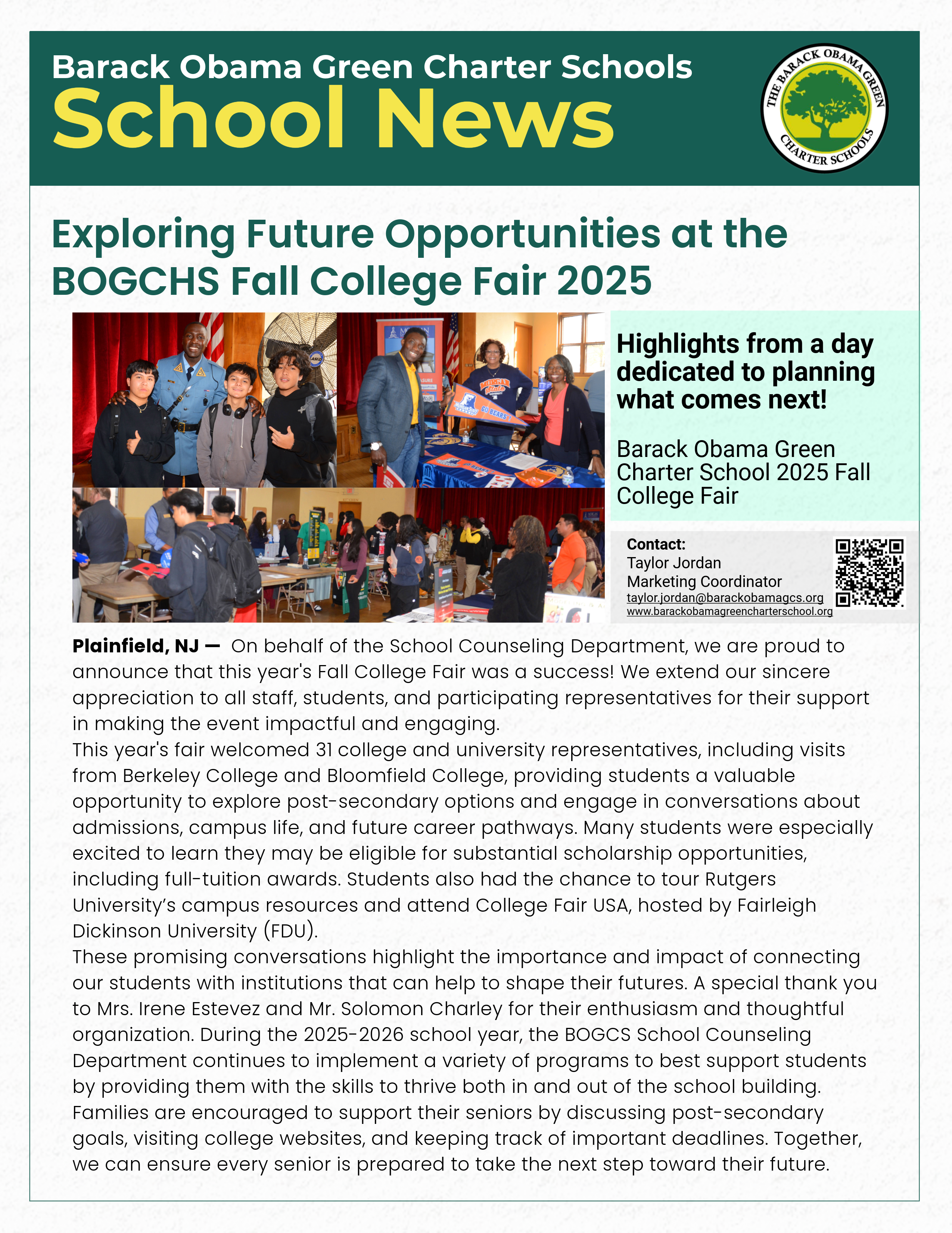 “Graduates of the Barack Obama Green Charter Schools will demonstrate exceptional capability in communication, critical thinking, problem solving, and responsible behavior. They will acquire and respect knowledge, be life-long learners, and good citizens.”